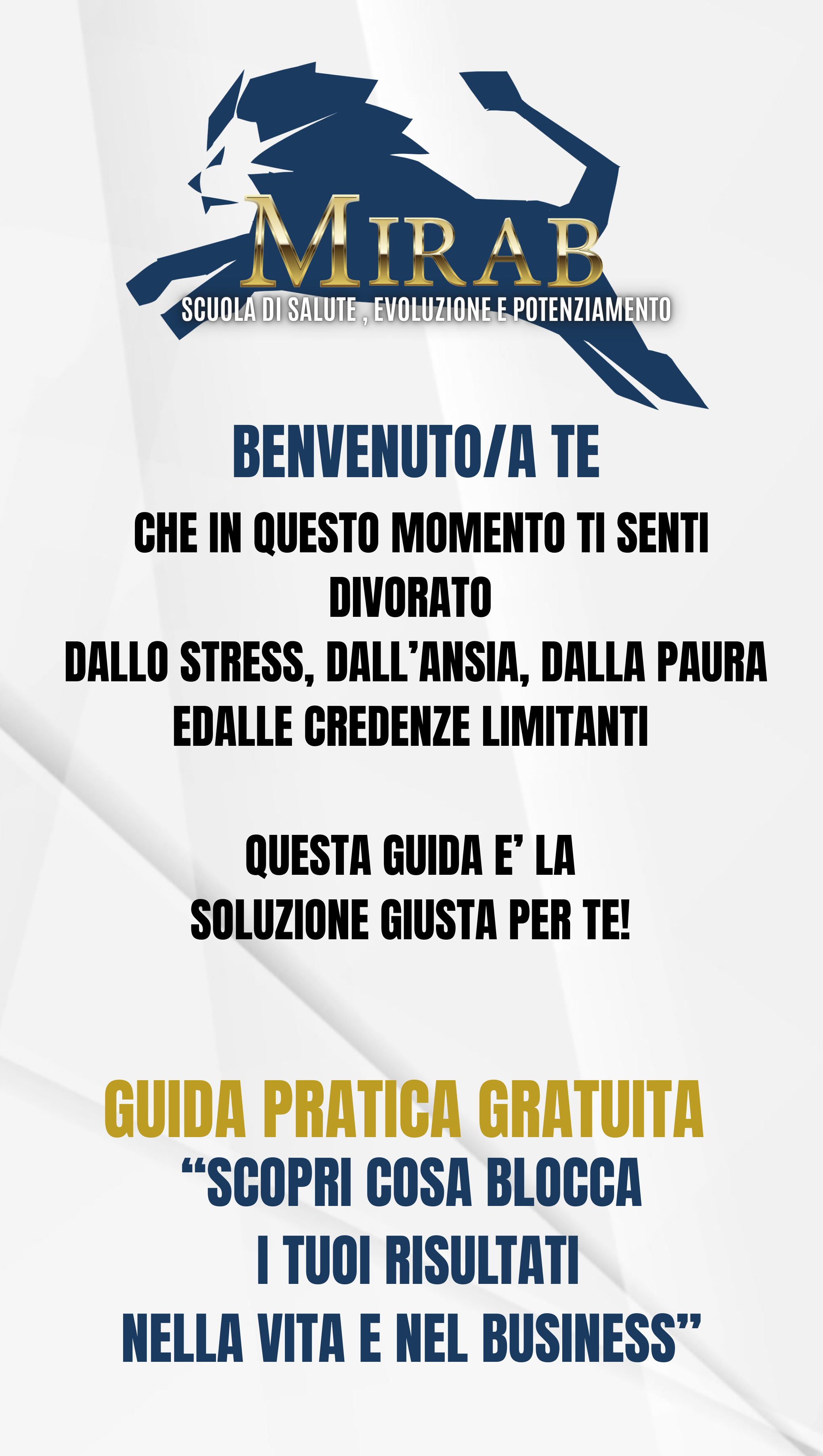I PERCORSI DELLA MIRAB ACADEMY SONO DA INTENDERSI ESCLUSIVAMENTE COME PERCORSI DI FORMAZIONE NON TERAPEUTICI NON DEVONO ESSERE UTILIZZATI PER TRATTARE O DIAGNOSTICARE ALCUNA PATOLOGIA